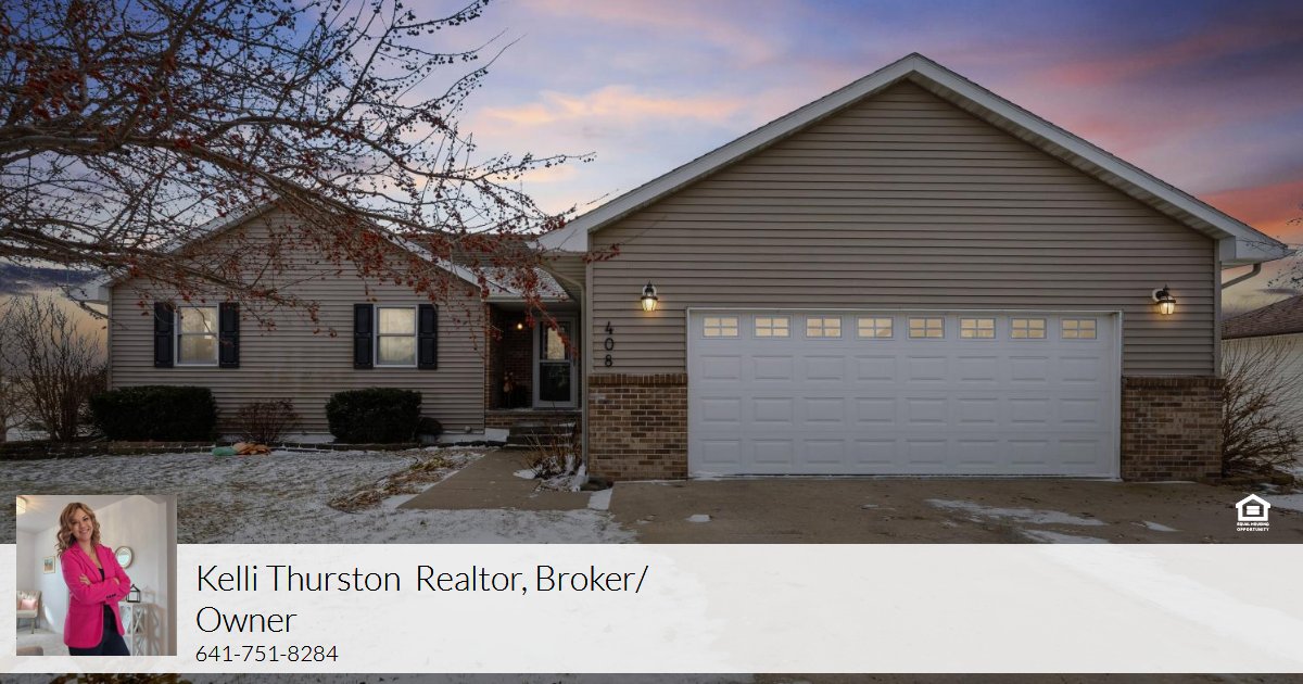 This beautiful 5 bedroom, 3 bathroom ranch with a spacious yard in State Center is ready and waiting for you! The well appointed kitchen is spacious and features newer stainless steel appliances and pantry space. The kitchen flows easily into the dining room that features glass doors out to the attached deck. The main floor also holds the large living room, a full bathroom, and three bedrooms, including the primary bedroom suite complete with a beautiful private bathroom and a walk-in closet. In the finished walk-out lower level you'll find another spacious living room, another full bathroom, two more bedrooms, a large storage room, and a separate laundry room. The lower level living room also has glass doors out to a concrete patio overlooking the back yard. There is so much to appreciate in this well designed home! Call today to schedule your personal tour!